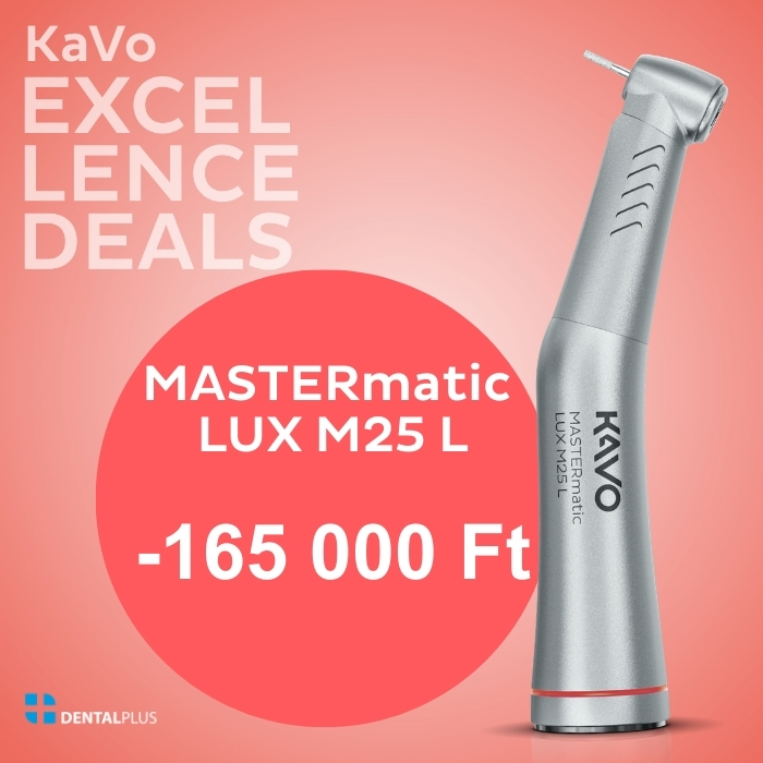 A KaVo MASTERmatic M25L egy professzionális, 1:5 áttételű gyorsító (high-speed) kézidarab, amely elektromos motorral működtetve akár 200 000 rpm fordulatszámot ér el. Kiváló teljesítményt, ergonomikus kezelhetőséget és hosszú élettartamot biztosít a mindennapi klinikai feladatokhoz.