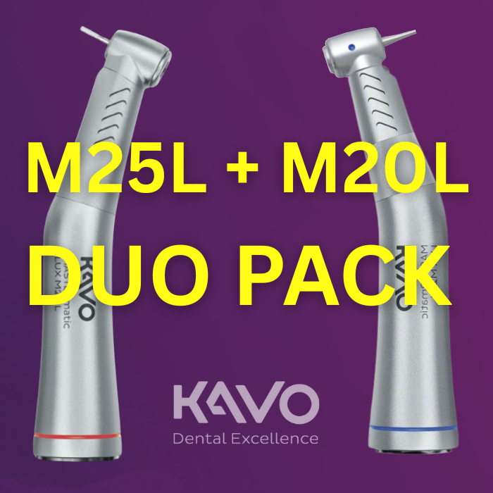 Fedezze fel a KaVo MASTERmatic sorozat két kiemelkedő kézidarabját, most kedvezményes Duo Pack csomagban! Az M20 L és az M25 L tökéletes párosítást nyújt a mindennapi rendelői munkához: megbízhatóság, precizitás és tartósság egyetlen csomagban.